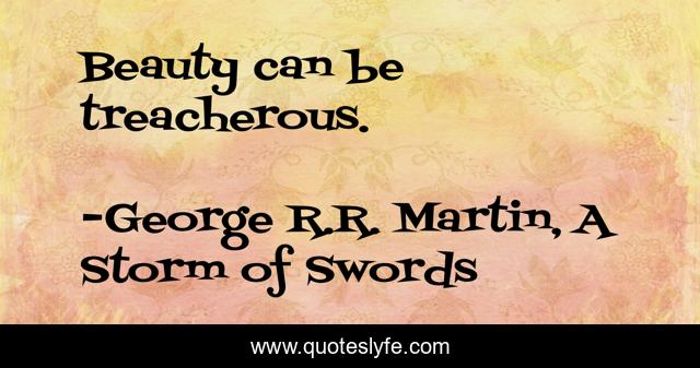 This page presents the quote "Beauty can be treacherous.". Author of this quote is George R.R. Martin, A Storm of Swords. This quote is about treacherous, beauty,.
