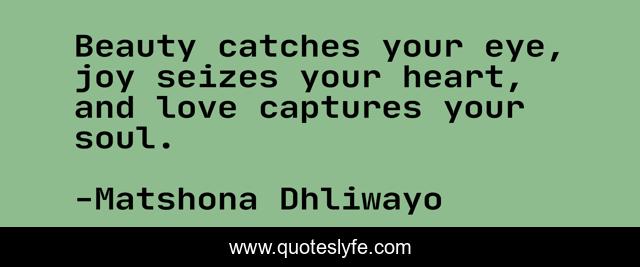 "Matshona Dhliwayo Quotes." Quoteslyfe.com, 2025. Mon. 08 Dec. 2025. <https://www.quoteslyfe.com/quote/Beauty-catches-your-eye-joy-seizes-your-49585>.