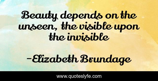 This page presents the quote "Beauty depends on the unseen, the visible upon the invisible". Author of this quote is Elizabeth Brundage. .