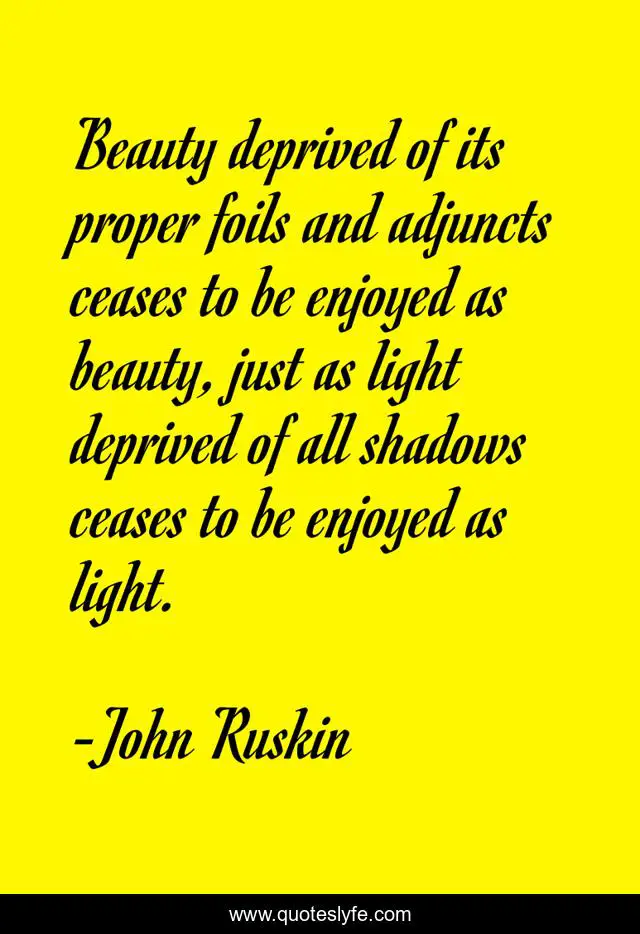 "John Ruskin Quotes." Quoteslyfe.com, 2025. Fri. 05 Dec. 2025. <https://www.quoteslyfe.com/quote/Beauty-deprived-of-its-proper-foils-and-316568>.