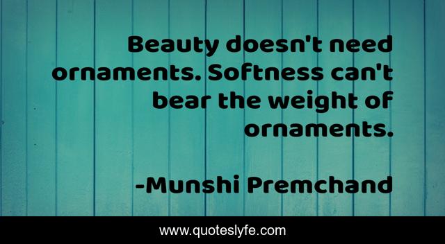 This page presents the quote "Beauty doesn't need ornaments. Softness can't bear the weight of ornaments.". Author of this quote is Munshi Premchand. This quote is about need, bear, weight,.