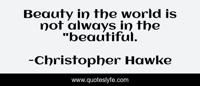 This page presents the quote "Beauty in the world is not always in the "beautiful.". Author of this quote is Christopher Hawke. This quote is about beautiful, beauty,.
