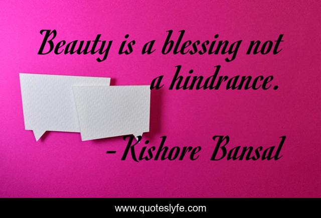 This page presents the quote "Beauty is a blessing not a hindrance.". Author of this quote is Kishore Bansal. This quote is about blessing, beauty, hindrance,.
