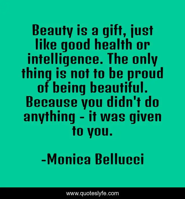 This page presents the quote "Beauty is a gift, just like good health or intelligence. The only thing is not to be proud of being beautiful. Because you didn't do anything - it was given to you.". Author of this quote is Monica Bellucci. This quote is about beautiful, health, beauty,.