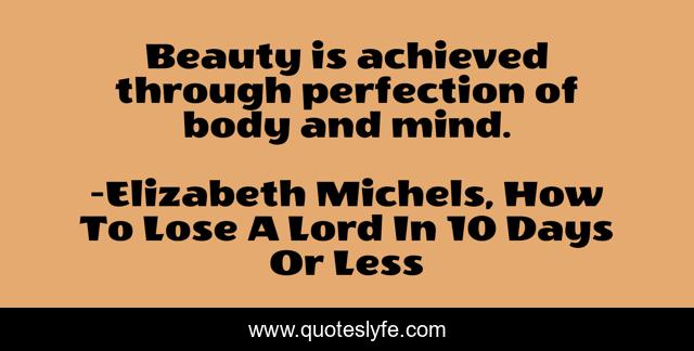 "Elizabeth Michels, How To Lose A Lord In 10 Days Or Less Quotes." Quoteslyfe.com, 2025. Fri. 05 Dec. 2025. <https://www.quoteslyfe.com/quote/Beauty-is-achieved-through-perfection-of-body-125602>.