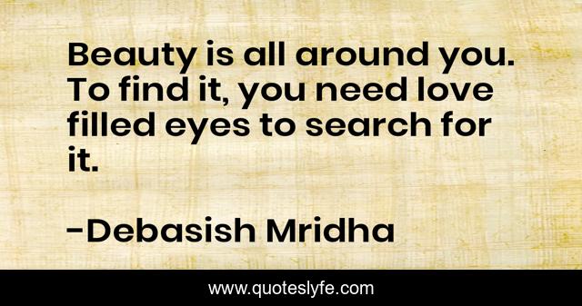 This page presents the quote "Beauty is all around you. To find it, you need love filled eyes to search for it.". Author of this quote is Debasish Mridha. This quote is about miraboli, love, beauty, oscar-wilde, beauty-is-all-around-you, philosophy, debasish-mridha, tagore, quotes,.