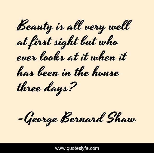 This page presents the quote "Beauty is all very well at first sight but who ever looks at it when it has been in the house three days?". Author of this quote is George Bernard Shaw. This quote is about house, three, sight,.