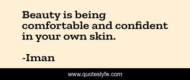 This page presents the quote "Beauty is being comfortable and confident in your own skin.". Author of this quote is Iman. This quote is about confident, skin, comfortable,.