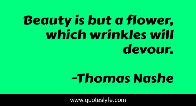 "Thomas Nashe Quotes." Quoteslyfe.com, 2025. Mon. 08 Dec. 2025. <https://www.quoteslyfe.com/quote/Beauty-is-but-a-flower-which-wrinkles-316256>.