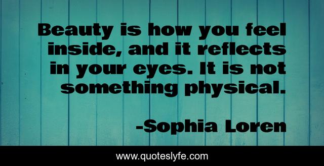 This page presents the quote "Beauty is how you feel inside, and it reflects in your eyes. It is not something physical.". Author of this quote is Sophia Loren. This quote is about aesthetics, cosmetics, beauty,.