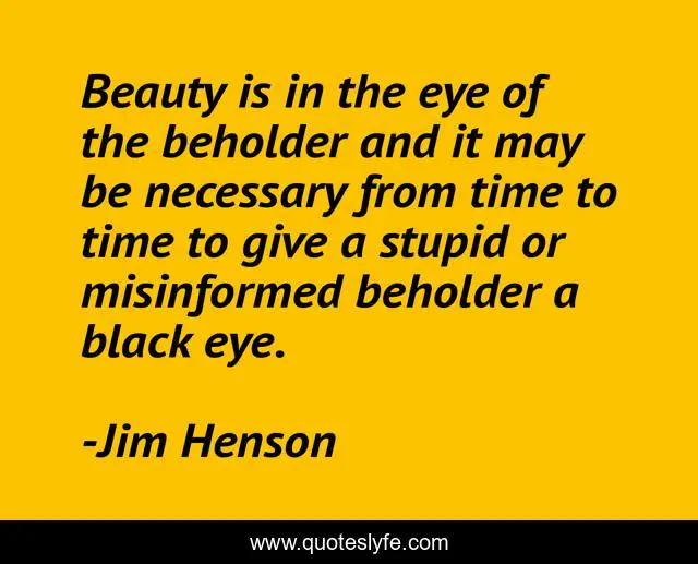 This page presents the quote "Beauty is in the eye of the beholder and it may be necessary from time to time to give a stupid or misinformed beholder a black eye.". Author of this quote is Jim Henson. .