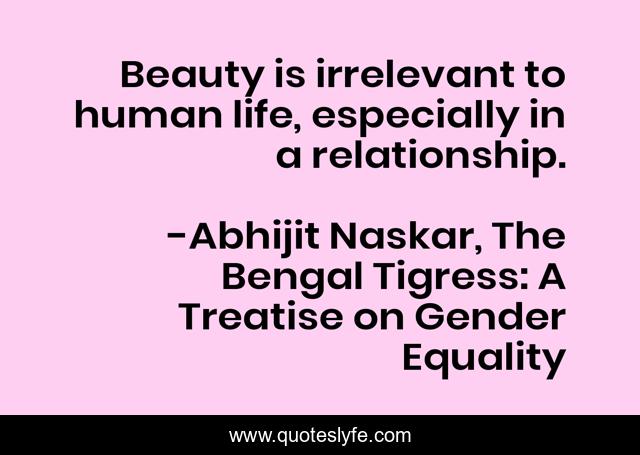"Abhijit Naskar, The Bengal Tigress: A Treatise on Gender Equality Quotes." Quoteslyfe.com, 2025. Sat. 06 Dec. 2025. <https://www.quoteslyfe.com/quote/Beauty-is-irrelevant-to-human-life-especially-61011>.