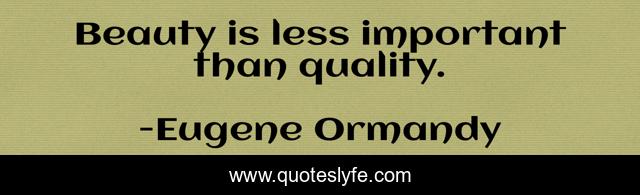 This page presents the quote "Beauty is less important than quality.". Author of this quote is Eugene Ormandy. This quote is about important, quality,.