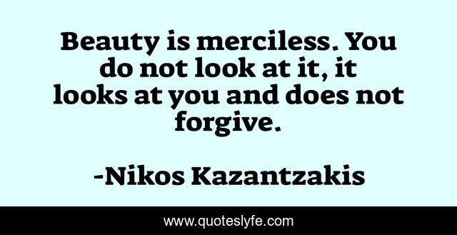This page presents the quote "Beauty is merciless. You do not look at it, it looks at you and does not forgive.". Author of this quote is Nikos Kazantzakis. This quote is about forgive, look,.