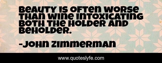 This page presents the quote "Beauty is often worse than wine intoxicating both the holder and beholder.". Author of this quote is John Zimmerman. This quote is about beholder, worse, wine,.