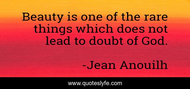 This page presents the quote "Beauty is one of the rare things which does not lead to doubt of God.". Author of this quote is Jean Anouilh. This quote is about beautiful, god, rare, beauty, evidence,.