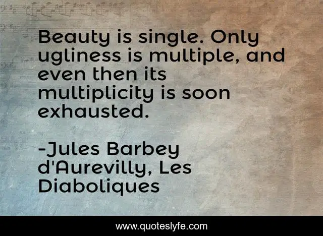 "Jules Barbey d'Aurevilly, Les Diaboliques Quotes." Quoteslyfe.com, 2025. Fri. 05 Dec. 2025. <https://www.quoteslyfe.com/quote/Beauty-is-single-Only-ugliness-is-multiple-60809>.