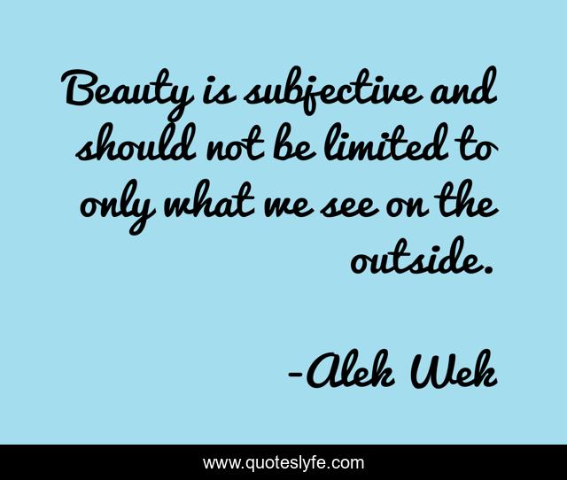 This page presents the quote "Beauty is subjective and should not be limited to only what we see on the outside.". Author of this quote is Alek Wek. This quote is about subjective, see, outside,.
