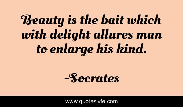 This page presents the quote "Beauty is the bait which with delight allures man to enlarge his kind.". Author of this quote is Socrates. This quote is about delight, kind, man,.