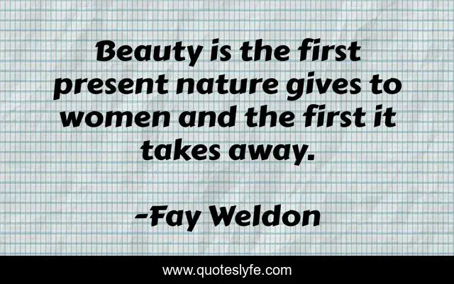 "Fay Weldon Quotes." Quoteslyfe.com, 2025. Tue. 09 Dec. 2025. <https://www.quoteslyfe.com/quote/Beauty-is-the-first-present-nature-gives-316683>.
