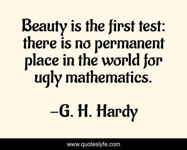 This page presents the quote "Beauty is the first test: there is no permanent place in the world for ugly mathematics.". Author of this quote is G. H. Hardy. This quote is about mathematics, world, ugly,.