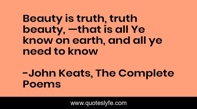 "John Keats, The Complete Poems Quotes." Quoteslyfe.com, 2025. Sat. 06 Dec. 2025. <https://www.quoteslyfe.com/quote/Beauty-is-truth-truth-beauty-that-is-9029>.