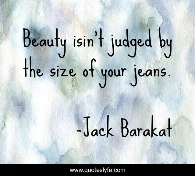 This page presents the quote "Beauty isin't judged by the size of your jeans.". Author of this quote is Jack Barakat. This quote is about spiritual, all-time-low, beauty,.