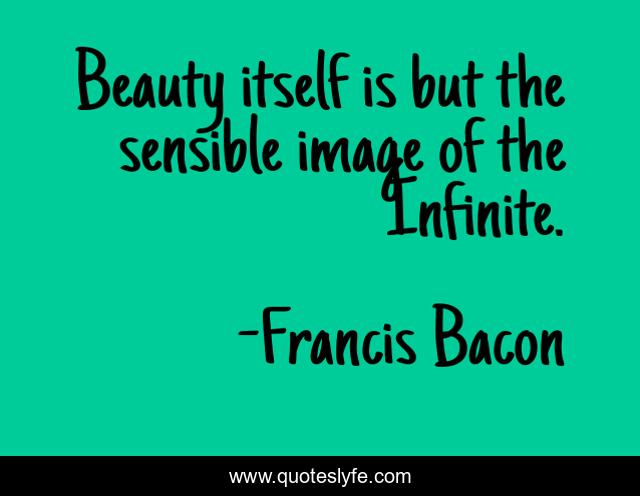 This page presents the quote "Beauty itself is but the sensible image of the Infinite.". Author of this quote is Francis Bacon. This quote is about infinite, image, itself,.