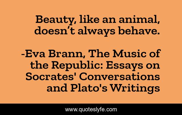 This page presents the quote "Beauty, like an animal, doesn’t always behave.". Author of this quote is Eva Brann, The Music of the Republic: Essays on Socrates' Conversations and Plato's Writings. This quote is about plato, beauty,.