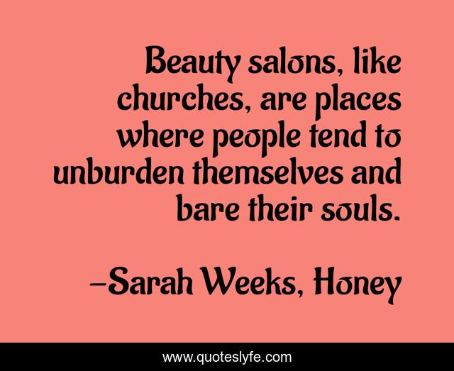"Sarah Weeks, Honey Quotes." Quoteslyfe.com, 2025. Tue. 09 Dec. 2025. <https://www.quoteslyfe.com/quote/Beauty-salons-like-churches-are-places-where-193697>.