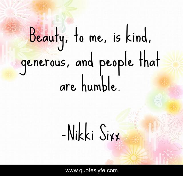 This page presents the quote "Beauty, to me, is kind, generous, and people that are humble.". Author of this quote is Nikki Sixx. This quote is about me, humble, people,.