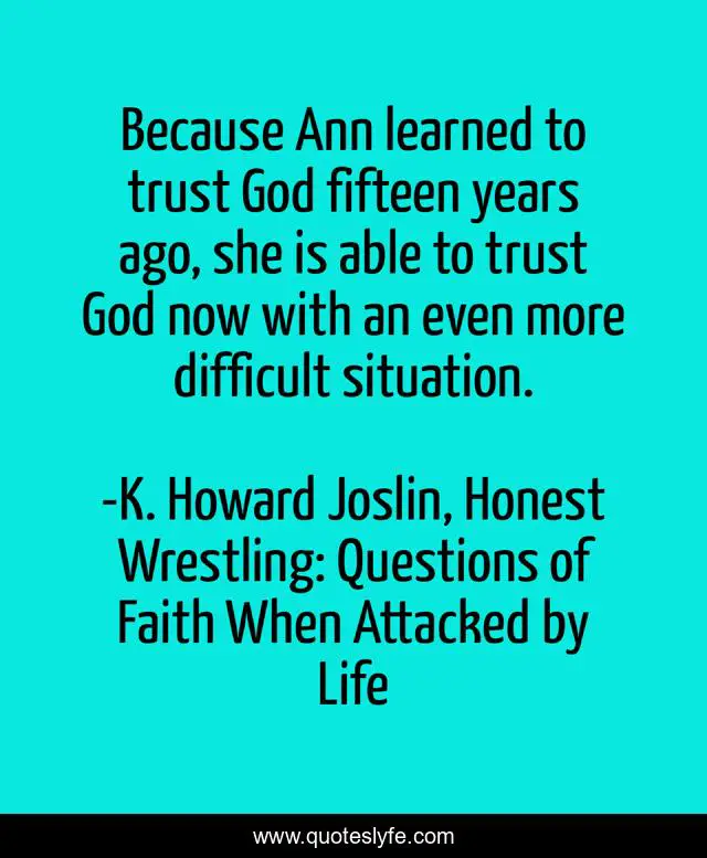 "K. Howard Joslin, Honest Wrestling: Questions of Faith When Attacked by Life Quotes." Quoteslyfe.com, 2025. Sat. 06 Dec. 2025. <https://www.quoteslyfe.com/quote/Because-Ann-learned-to-trust-God-fifteen-120052>.