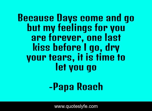 This page presents the quote "Because Days come and go but my feelings for you are forever, one last kiss before I go, dry your tears, it is time to let you go". Author of this quote is Papa Roach. .