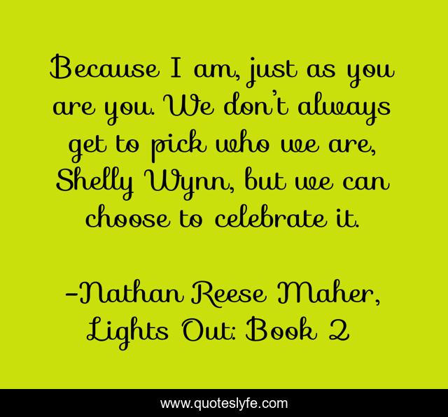 "Nathan Reese Maher, Lights Out: Book 2 Quotes." Quoteslyfe.com, 2025. Mon. 08 Dec. 2025. <https://www.quoteslyfe.com/quote/Because-I-am-just-as-you-are-43874>.
