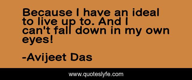 This page presents the quote "Because I have an ideal to live up to. And I can't fall down in my own eyes!". Author of this quote is Avijeet Das. This quote is about life-inspirational, poet, ideal, writers, integrity,.