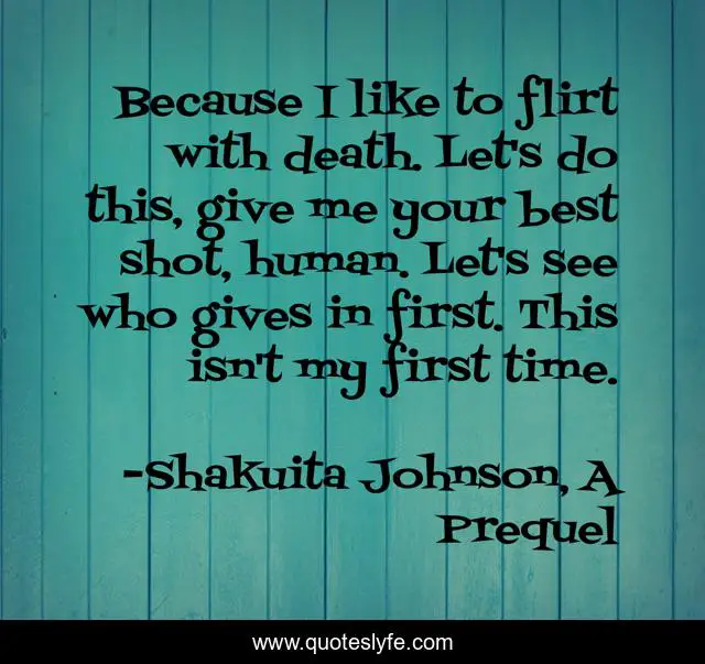"Shakuita Johnson, A Prequel Quotes." Quoteslyfe.com, 2025. Fri. 05 Dec. 2025. <https://www.quoteslyfe.com/quote/Because-I-like-to-flirt-with-death-184002>.