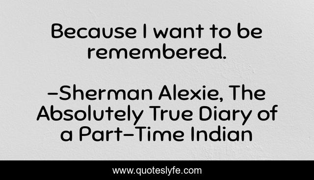 "Sherman Alexie, The Absolutely True Diary of a Part-Time Indian Quotes." Quoteslyfe.com, 2025. Fri. 05 Dec. 2025. <https://www.quoteslyfe.com/quote/Because-I-want-to-be-remembered-240174>.