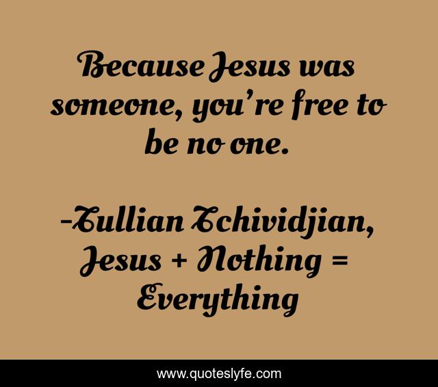 "Tullian Tchividjian, Jesus + Nothing = Everything Quotes." Quoteslyfe.com, 2025. Mon. 08 Dec. 2025. <https://www.quoteslyfe.com/quote/Because-Jesus-was-someone-you-re-free-134603>.