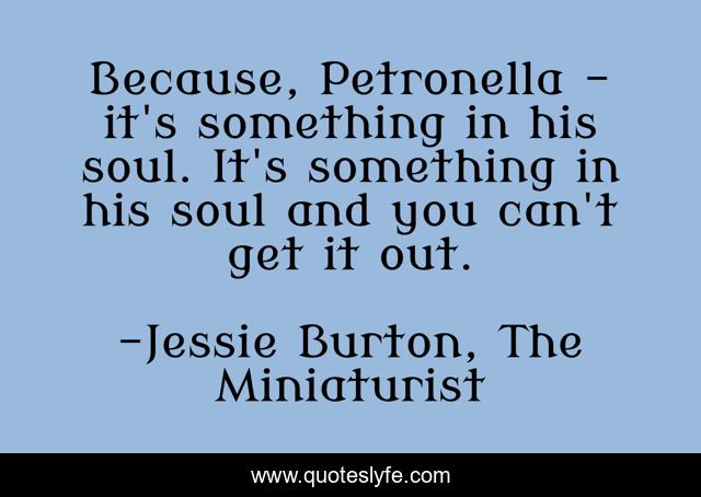 "Jessie Burton, The Miniaturist Quotes." Quoteslyfe.com, 2025. Mon. 08 Dec. 2025. <https://www.quoteslyfe.com/quote/Because-Petronella-it-s-something-in-his-70708>.