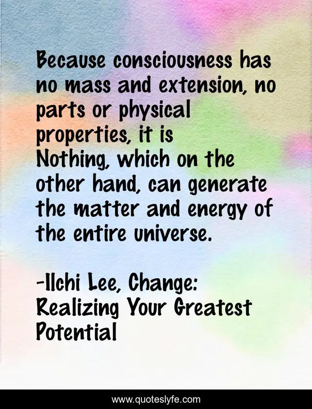 "Ilchi Lee, Change: Realizing Your Greatest Potential Quotes." Quoteslyfe.com, 2025. Mon. 08 Dec. 2025. <https://www.quoteslyfe.com/quote/Because-consciousness-has-no-mass-and-extension-253370>.