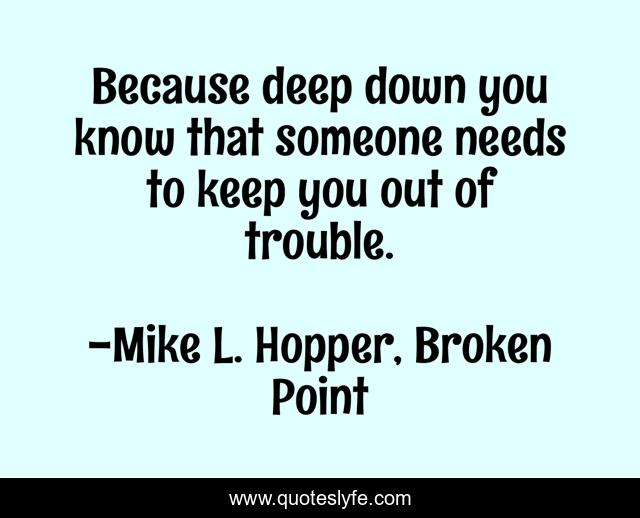 "Mike L. Hopper, Broken Point Quotes." Quoteslyfe.com, 2025. Fri. 05 Dec. 2025. <https://www.quoteslyfe.com/quote/Because-deep-down-you-know-that-someone-151916>.