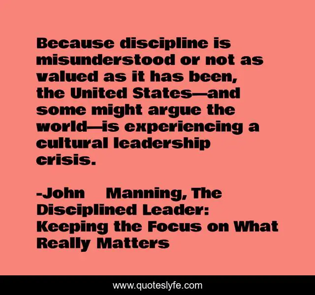 "John Manning, The Disciplined Leader: Keeping the Focus on What Really Matters Quotes." Quoteslyfe.com, 2025. Fri. 05 Dec. 2025. <https://www.quoteslyfe.com/quote/Because-discipline-is-misunderstood-or-not-as-128584>.