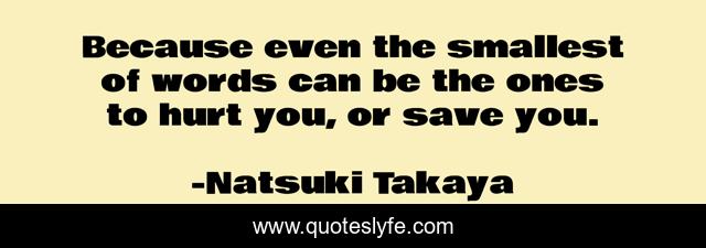 "Natsuki Takaya Quotes." Quoteslyfe.com, 2025. Fri. 05 Dec. 2025. <https://www.quoteslyfe.com/quote/Because-even-the-smallest-of-words-can-112452>.