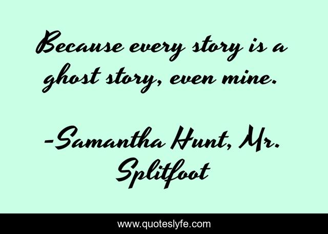 "Samantha Hunt, Mr. Splitfoot Quotes." Quoteslyfe.com, 2025. Mon. 08 Dec. 2025. <https://www.quoteslyfe.com/quote/Because-every-story-is-a-ghost-story-180608>.