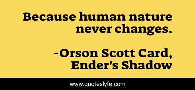 "Orson Scott Card, Ender's Shadow Quotes." Quoteslyfe.com, 2025. Sun. 07 Dec. 2025. <https://www.quoteslyfe.com/quote/Because-human-nature-never-changes-145284>.