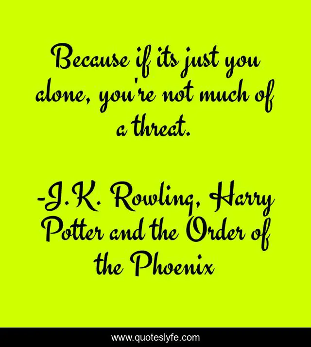 This page presents the quote "Because if its just you alone, you're not much of a threat.". Author of this quote is J.K. Rowling, Harry Potter and the Order of the Phoenix. .