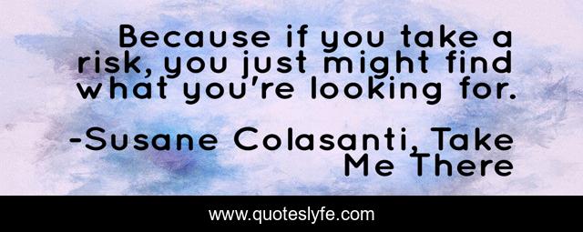 This page presents the quote "Because if you take a risk, you just might find what you're looking for.". Author of this quote is Susane Colasanti, Take Me There. This quote is about life, moving-forward, risk,.