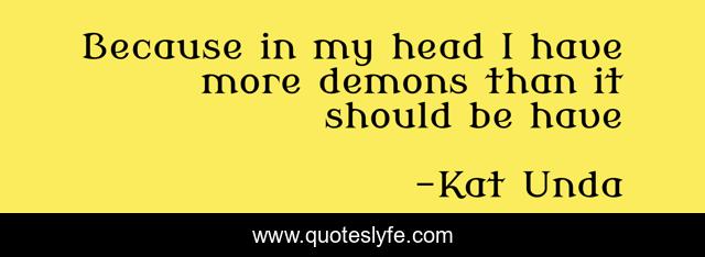 This page presents the quote "Because in my head I have more demons than it should be have". Author of this quote is Kat Unda. This quote is about head, demons,.
