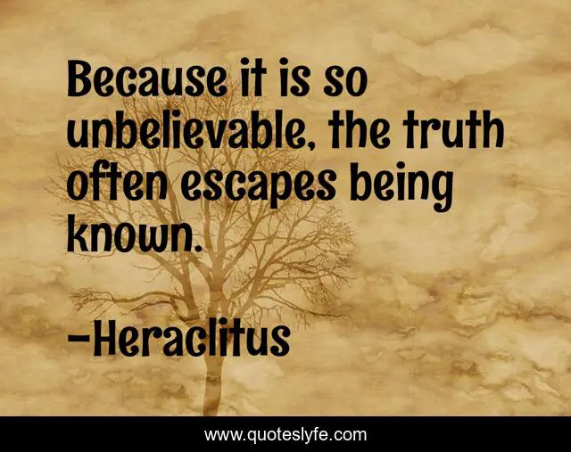 "Heraclitus Quotes." Quoteslyfe.com, 2025. Fri. 05 Dec. 2025. <https://www.quoteslyfe.com/quote/Because-it-is-so-unbelievable-the-truth-31416>.