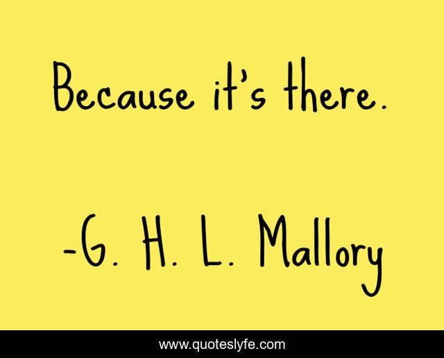 "G. H. L. Mallory Quotes." Quoteslyfe.com, 2025. Fri. 05 Dec. 2025. <https://www.quoteslyfe.com/quote/Because-it-s-there-271159>.